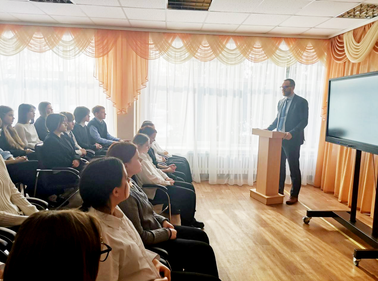 Заместитель председателя концерна «Белгоспищепром» Александр Кижук в рамках информационно-образовательного проекта «Школа Активного Гражданина» провел встречу с учащимися ГУО «Гимназия 17 г. Минска».