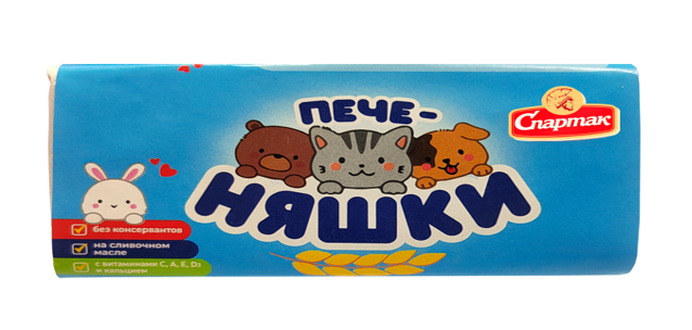Большой популярностью у наших деток пользуется разработанное в рамках научного задания печенье для детского питания (для детей дошкольного и школьного возраста), обогащенное витаминами А, Е, С, D3 и кальцием. Печенье выпускается на основе муки пшеничной, сахарной пудры, с добавлением муки овсяной, масла сливочного, масла рапсового, молока сухого цельного, меланжа. Продукция внедрена на СП ОАО «Спартак» и реализуется под ТМ «печеНяшки» с 2023 года.