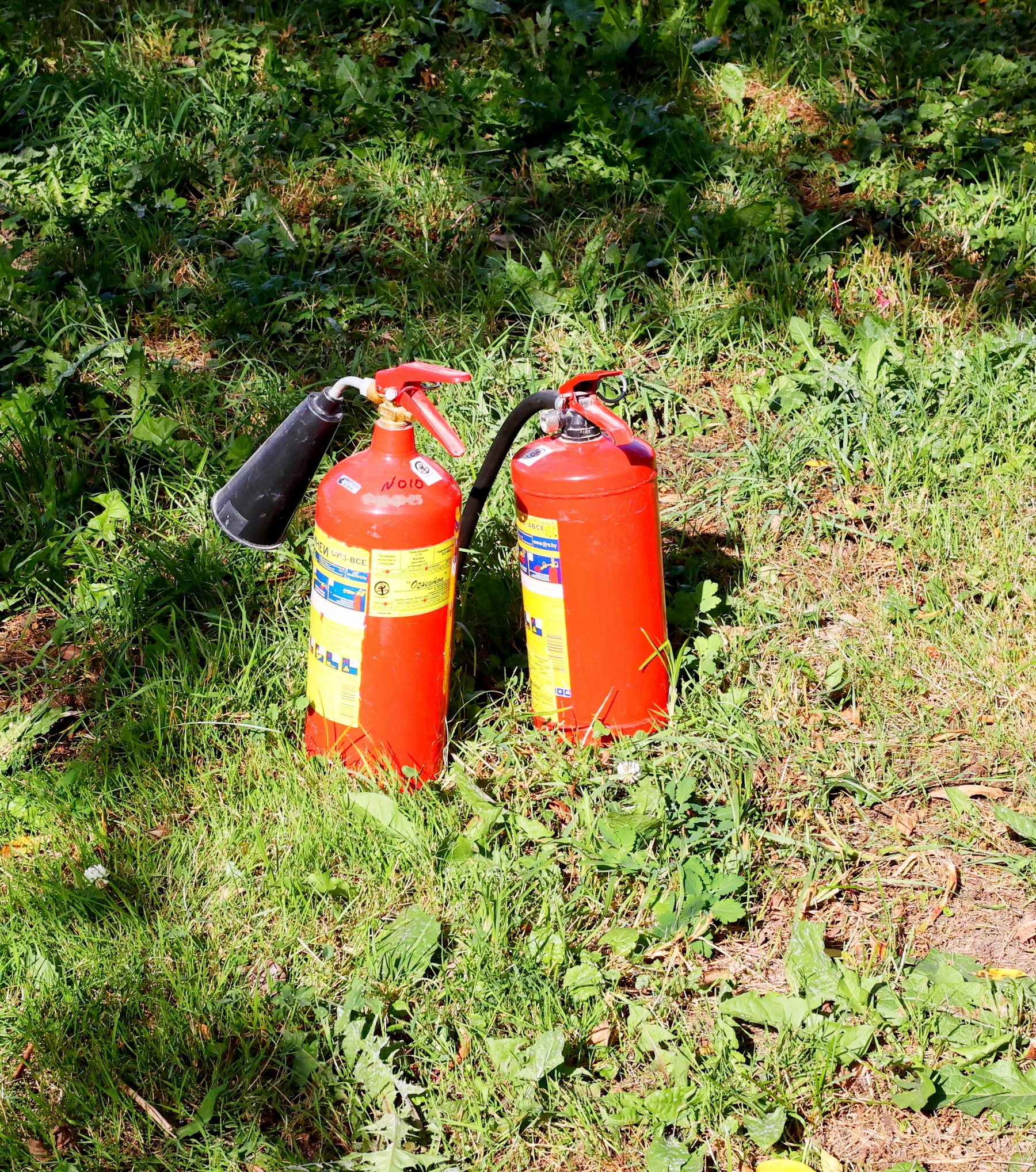 Помимо теоретической подготовки (ознакомление с информационными материалами и видеоматериалами МЧС) во дворе концерна на зеленой зоне была проведена практическая отработка действий при пожаре.