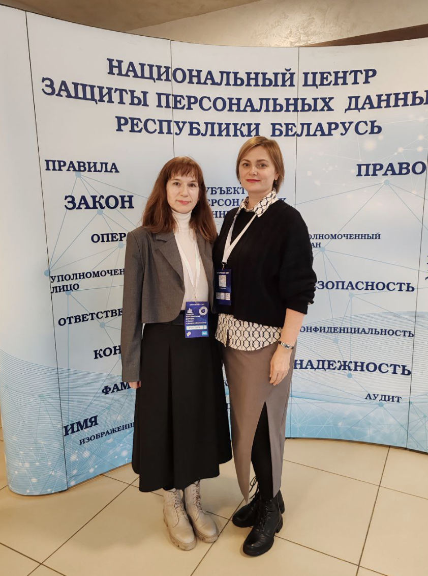 Заместитель начальника отдела правового обеспечения управления правовой, кадровой и идеологической работы концерна «Белгоспищепром» Виктория Аникович и главный специалист по кадровой работе Ирина Горбатенко сегодня принимают участие в форуме «Защита персональных данных: от Закона к доверию и безопасности».
