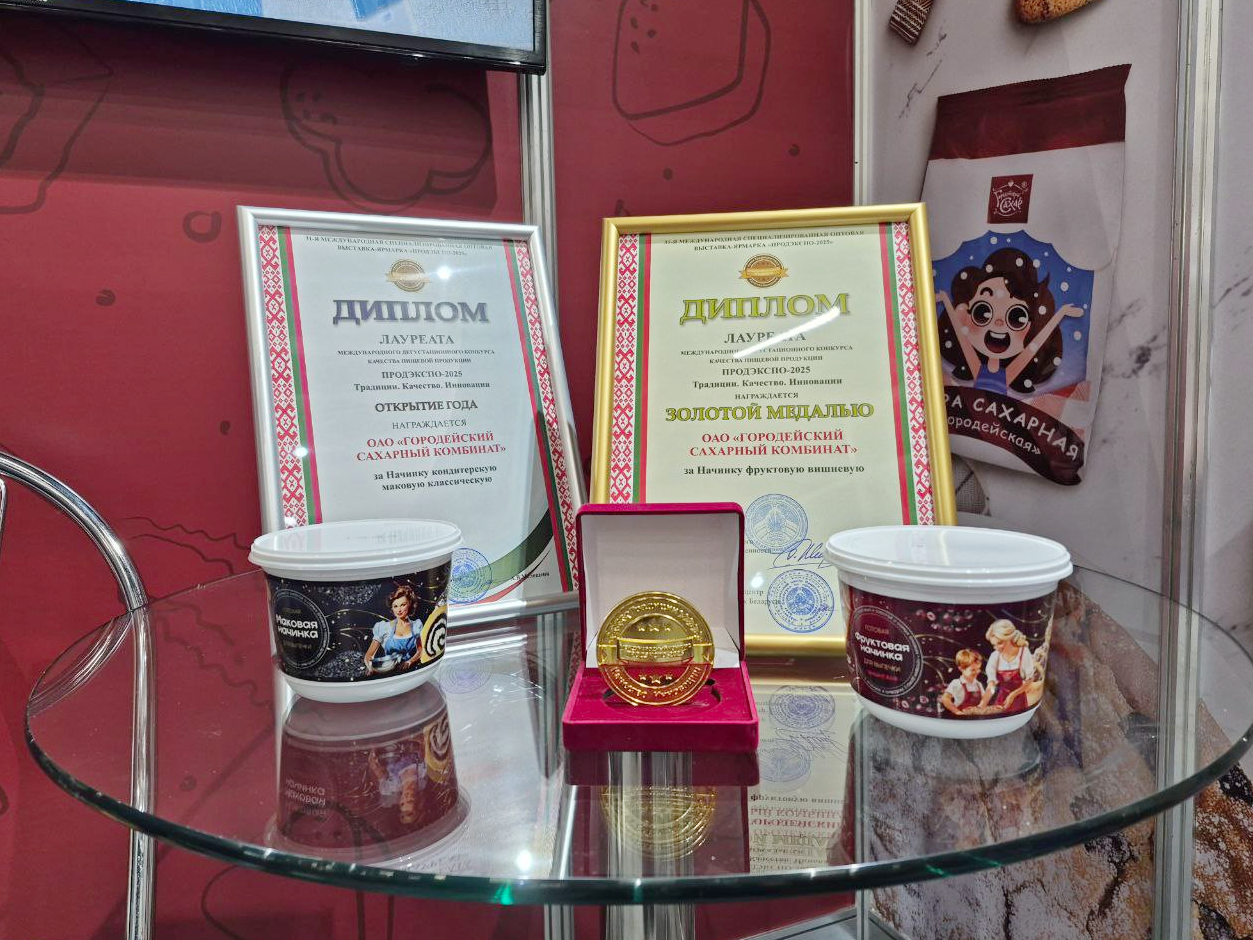 - ОАО «ГОРОДЕЙСКИЙ САХАРНЫЙ КОМБИНАТ»: золотая медаль и диплом «Открытие года»;