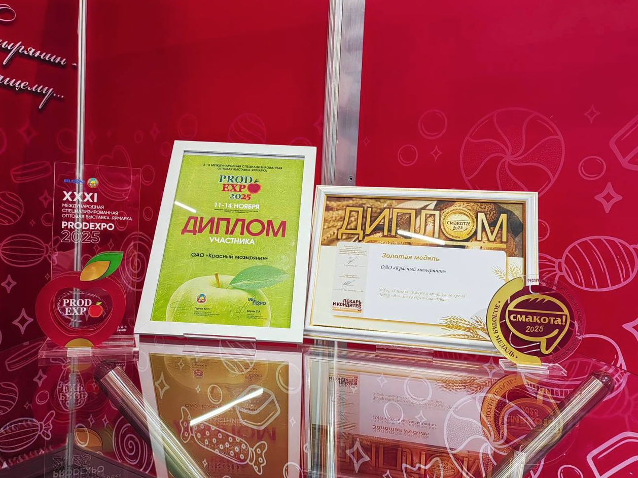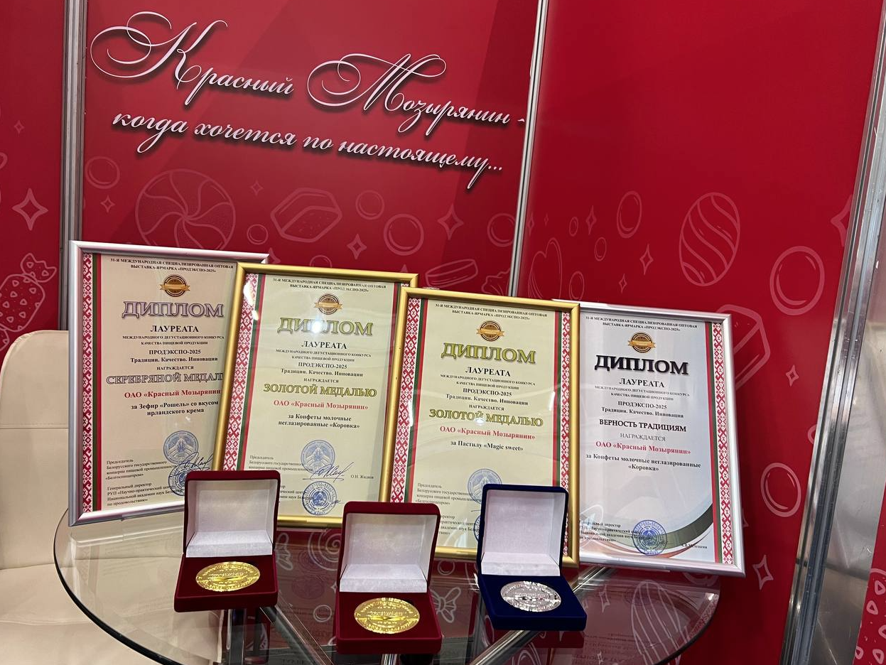 - ОАО «Красный Мозырянин»: 2 золотых и 1 серебряная медаль и диплом «Верность традициям»;