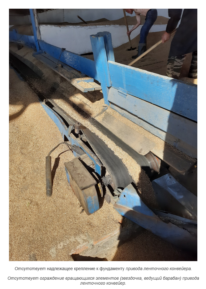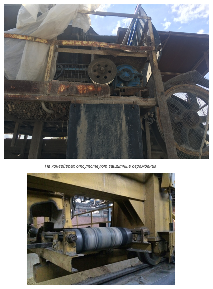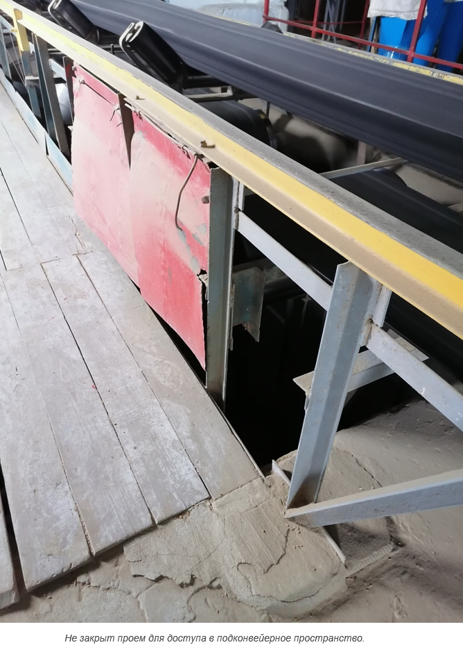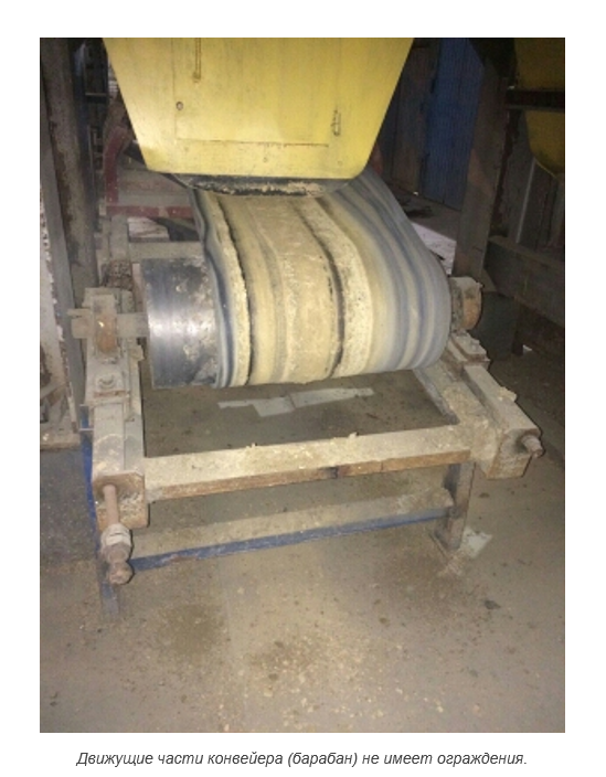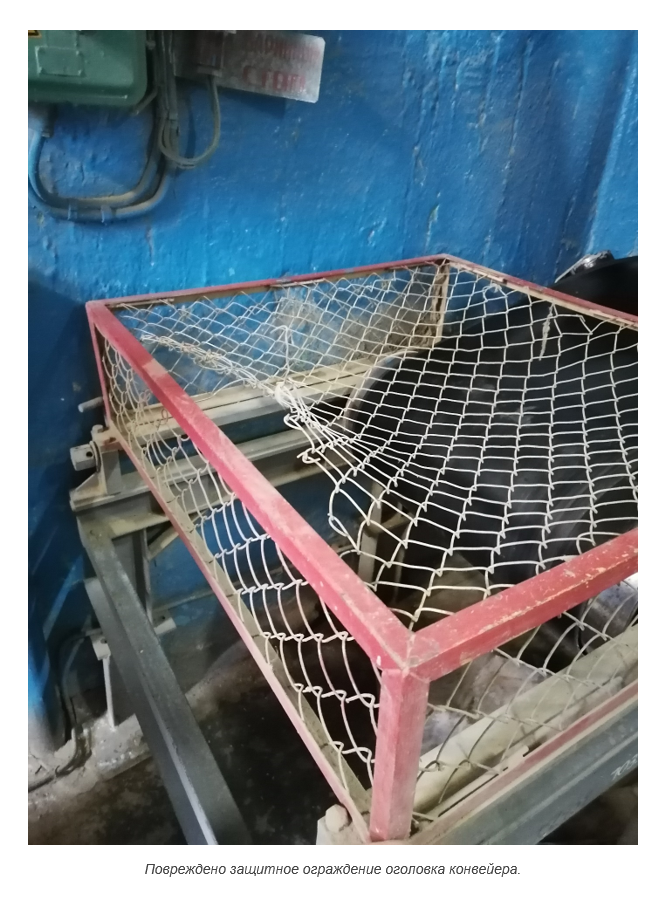 • ограждение приводных и натяжных барабанов, тяговых органов конвейера;