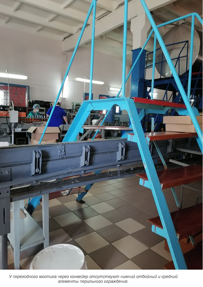 Конвейер не оборудован устройством для его остановки из любой его точки.