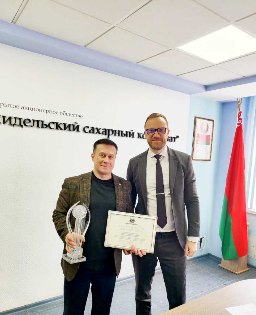 За достижение высоких показателей в труде, образцовое отношение к исполнению должностных обязанностей, творческий подход к работе и проявленную инициативу Благодарность председателя Белорусского государственного концерна пищевой промышленности «Белгоспищепром» объявлена коллективу ОАО «Скидельский сахарный комбинат».