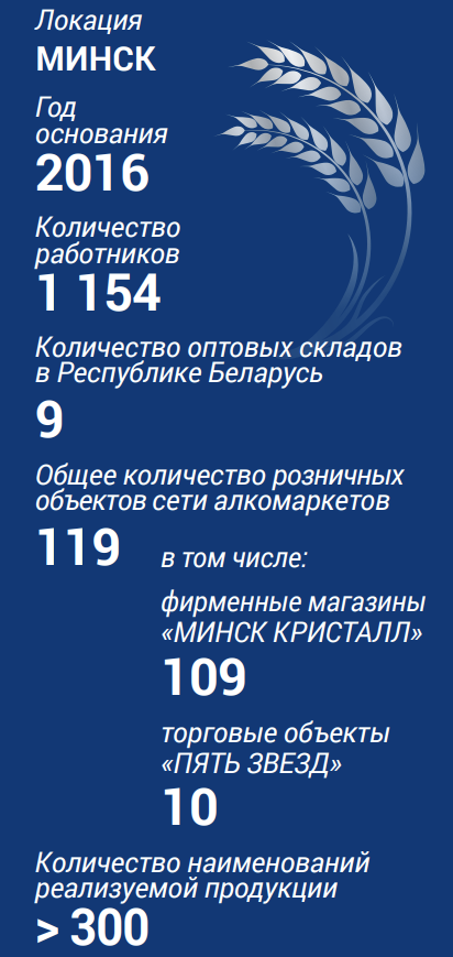 Торговая компания «МИНСК КРИСТАЛЛ ТРЕЙД» – ключевое звено в системе холдинга «МИНСК КРИСТАЛЛ ГРУПП», отвечающее за реализацию продукции и развитие дистрибуции на территории Республики Беларусь. С момента своего основания компания является самостоятельным участником холдинга.
