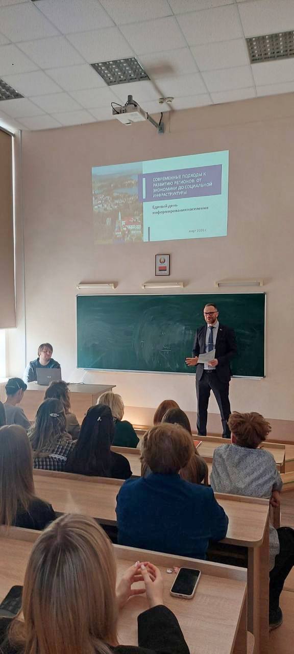 Единый день информирования прошел сегодня и в Минском государственном финансово-экономическом колледже. О современных подходах к развитию регионов: от экономики до социальной инфраструктуры учащимся рассказал заместитель председателя концерна «Белгоспищепром» Александр Кижук.
