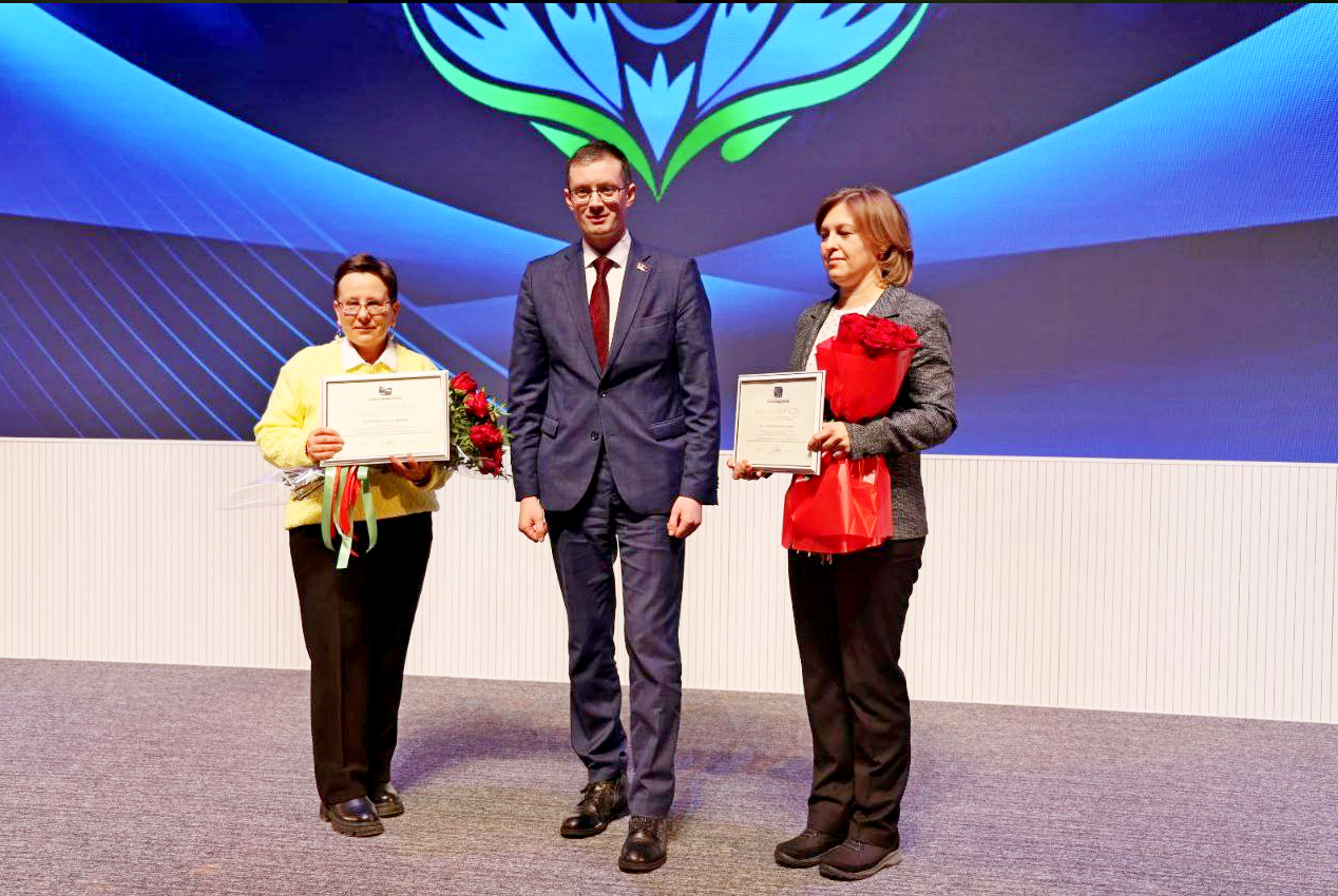 В честь Дня белорусской науки в Минске состоялось Республиканское собрание научной общественности, на котором заместитель председателя концерна «Белгоспищепром» Игорь Груцо вручил Благодарность нашего концерна первому заместителю генерального директора Научно-практического центра Национальной академии наук Беларуси по продовольствию Наталье Комаровой и учёному секретарю Кристине Жаковой.