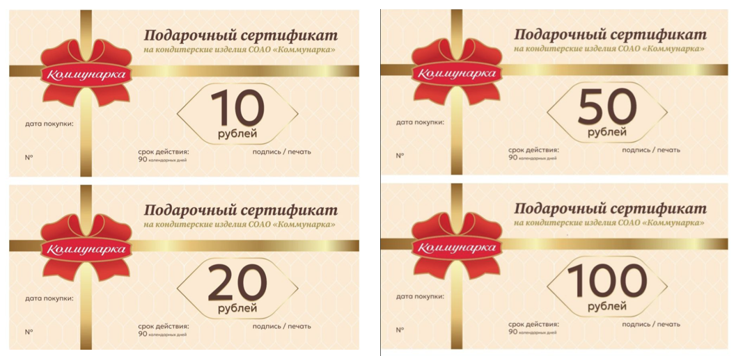 В фирменных магазинах кондитерских фабрик «Спартак», «Коммунарка» и «Красный пищевик» покупатели могут приобрести подарочные сертификаты различных номиналов, которые позволят решить сложную задачу выбора оптимальных сладостей для подарков своим близким и родным людям, а также друзьям и коллегам.