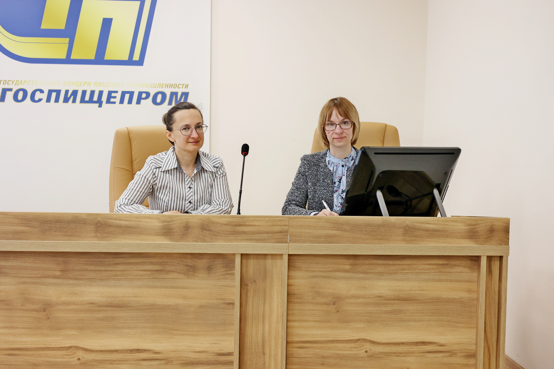 В режиме ВКС работают начальник сектора научно-исследовательских работ, стандартизации и подтверждения соответствия управления научно-технического развития, капитального строительства и инвестиций концерна «Белгоспищепром» Ольга Русая и главный специалист данного сектора Светлана Томашевич.